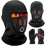 Winter Rider Warm Anti Haze Balaclava Full Face Mask with Bonus Gloves, 3 in 1 Thermal for Outdoor Skiing Motorcycling