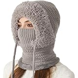 Women's Outdoors Windproof Scarf Hat, 3 in 1 Winter Balaclava for Women, Warm Knitted Face Mask Hat Cap Scarf(Gray)