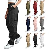 VOGFFR Womens Cargo Pants Elastic Waist Hiking Pants Athletic Straight Leg Trouser High Waisted Pant with Multi-Pockets